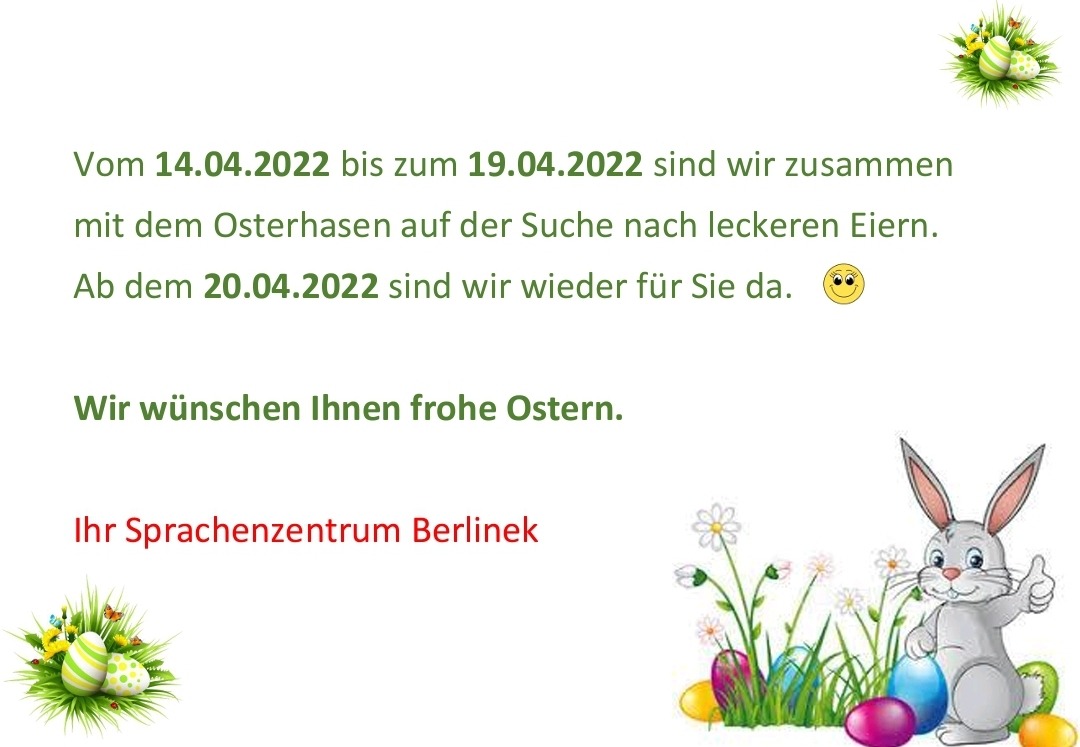 Wir wünschen Ihnen ein schönes, erholsames Osterwochenende und eine gute Zeit.